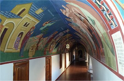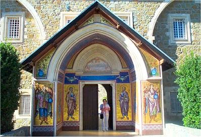 Kykkos Monastery. "We also visited Kykkos Monastery which is fairly new. I must say it is the most beautiful one I have seen since we came to this mission. There are hundreds of mosaic murals on the walls. And the setting is so impressive in the tops of the Troodos mountains." |