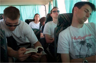 The Long Ride Home "The missionaries were pretty tired on the way back and Paul had to take a picture of most of them sleeping on the bus." |