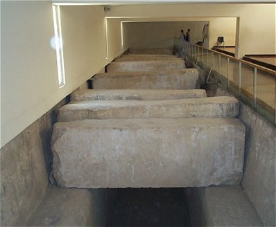 Burial Trench for Solar Boat. "Dad figured the stone blocks that covered the tomb for this boat had to weigh about 20 tons each." |