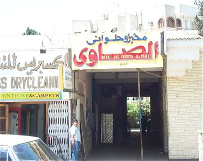 The entrance to Nancy's favorite bakery. "The Taylors are not learning the Arabic words very fast: too many sounds to make that are difficult to reproduce. Here we are in a land that speaks Arabic and our Church meetings are held in English because 99% of the members here speak English. If there were more members that spoke Arabic we could use the two languages. We do have a Sunday School class in Arabic, but that is all. |