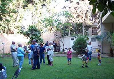 "The branch party was an outdoor BBQ in the backyard of the church. It was the last day of school for the Cairo American College (all ages K through 12 go there). Many of the families leave for the summer when school is over, so it is the last chance to get everyone together. They had fun tossing balloons full of water using a blanket held by two people. As you might expect it ended up with people throwing the balloons of water at each other." |