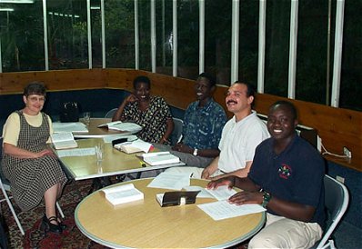 "Our adult seminary class meets every Wednesday evening for about an hour and a half. We have had five attend so far. It is interesting to learn what the Arabic Book of Mormon calls some of our words. For instance, instead of saying a river of water, it describes what we would call an oasis with water springing forth from the ground. Our students all read Arabic, but can read a little English. So we have a challenge to get our thoughts across." |