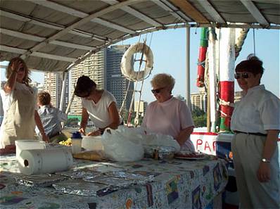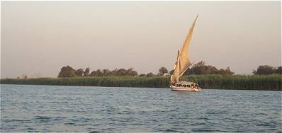 A faluka on the Nile. "We took a Faluka ride on the Nile with six other people. The only mode of power on the Faluka boats is the wind. We took our dinner and enjoyed seeing the sunset." |