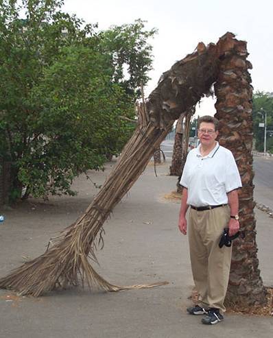 "Paul and I try to walk every morning before it gets unbearably hot. We have noticed some dying palm trees along the way that are breaking open and inside it looks like burlap. |