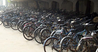 Bicycle Parking at Peak Class Hours on NUPT Campus. Bicycles are everywhere in China. They are the main form of transportation as far as we can tell. On the big main streets there are bicycle lanes on both sides of the road where everyone rides their bicycles. |