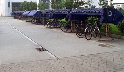 Bicycle Port. There is even covered parking for bicycles. On rainy days they have a specially designed poncho they wear to keep dry. They have all kinds of carriers on them as well to carry other people, tanks of propane, five-liter bottles of water, and so on. |