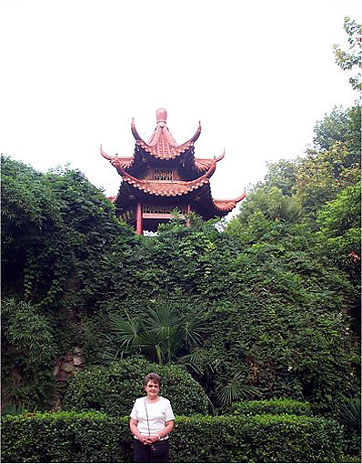 Campus Pagoda There are very few Caucasians in Nanjing, and we catch quite a few looks as we walk around town due to our nationality and size. Still, Americans seem to be welcome here; we certainly have been warmly greeted and treated courteously. |
