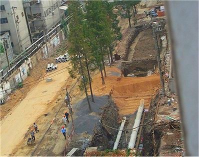 Construction Behind Our Apartment. Just behind our hotel they are working 24 hours per day to put in a sewer line. It makes for lots of noise at night, but it is a sign of progress. When they can quit using the open sewer canals, that will really be a major improvement. |