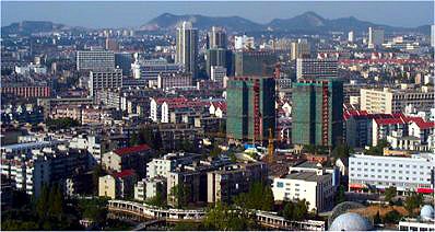 Nanjing, Looking East toward Purple Mountain. Bicycles are everywhere in China. They are the main form of transportation as far as we can tell. On the big main streets there are bicycle lanes on both sides of the road where everyone rides their bicycles. |