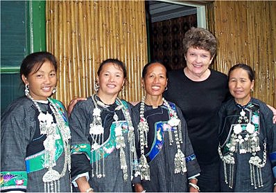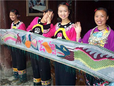 Miao Girls. The girls were all dressed in the native costume. They have tried to create a type of cultural center there much like the Polynesian Center near BYU Hawaii. After dinner we were invited to visit in the homes of some of the families and then there was an entertainment show of traditional dancing and singing. It was absolutely delightful. It made the whole trip worthwhile to visit them and their mountains. |