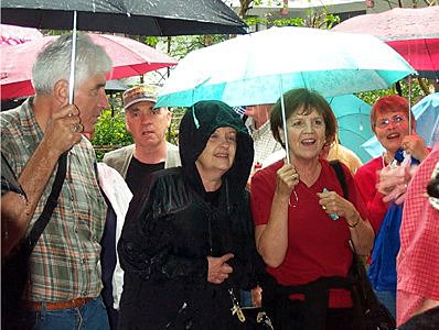 Singing in the Rain. We were scheduled to have lunch there first thing. We had to stand outside in the rain while they sang songs to us and we had to sing to them before we could enter where the tables were set. They were very low to the floor as were the chairs. |