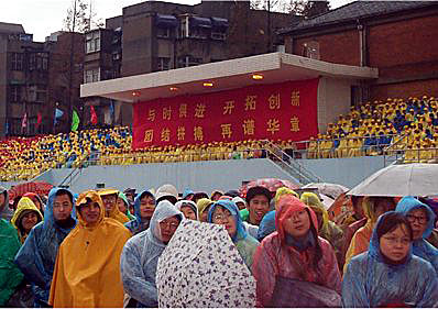 Opening Ceremonies NUPT 60th Anniversary It was terrible day for the celebration, which was held outside. It rained the day before, all day during the ceremonies, and it is snowing today. |