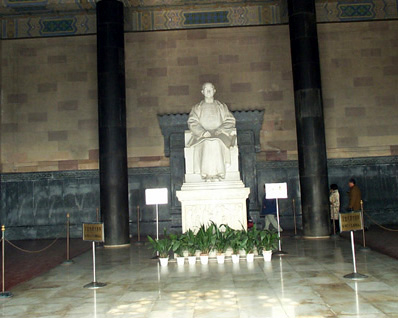 Statue of Sun Yat-Sen Sun Yat-Sen is the founder of modern Chinese government. After the abdication of the last Chinese Emperor in 1912 , Sun Yat-Sen was instrumental in forming the Nationalist Party and was elected Provisional President of China. The capitol was Nanjing. Later Yat-Sen was forced to stand aside for the leader of the army, who died the next year. Then the local warlords took over parts of the country, and Chiang Kaishek took control of the party. |
