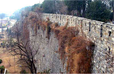 The Nanjing Wall We visited the Nanjing wall. It is an old wall that went around the old city. It is unique in that it followed the contours of the land and not in a rectangle, like most city walls. There is over 20 miles of wall still intact. When they expand for roads, etc, they just cut though it, but leave either side intact. |