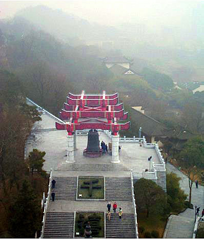 Cruise on the Yangtze River. Our cruise on the Yangtze river began in the city of Wuhan. While we were there we visited the Yellow Crane Pavilion which is on the highest hill of the city. It was recently rebuilt and has an elevator so we could go to the top without climbing 100's of stairs. The interior walls have beautiful mosaic paintings two stories high. We couldn't see very far from the top because of the foggy, polluted air. |